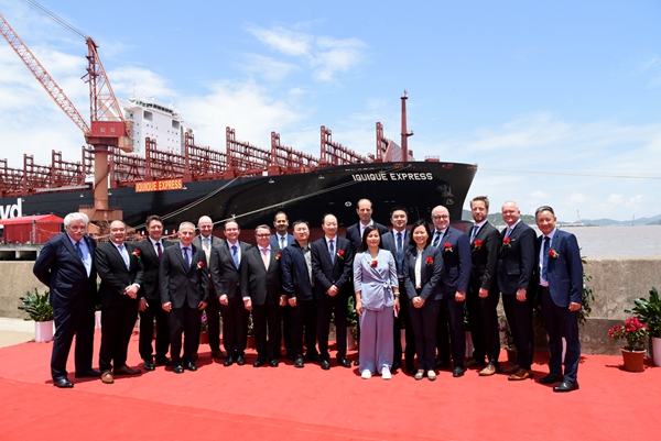 On May 30, 2024, we held naming ceremony for one 13000 TEU Container Vessel with Builder's Hull No.0213004. Our CEO Mr. Liu Haijin, Executive Deputy General Manager Mr. Zhang Yuyong, Deputy General Manager & Executive Director Mr. Yuan Heng, Hapag-Lloyd Hamburg - COO Dr. Maximilian Rothkopf, Hapag-Lloyd Hamburg - Senior Director Mr. Lutz-Michael Dyck, Midea - Head of Ocean Logistics Ms Joanna Bin, Anglo-Eastern - COO Mr. Carsten Ostenfeld, Chartworld Shipping Corporation - New Building Manager Mr. Spyros Papandreou, BV New Construction Dept. Manager in China -  Mr. Christophe Vaes and other VIP guests attended this ceremony. Godmother Ms Joanna Bin named the vessel for "IQUIQUE EXPRESS".