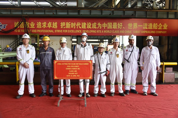 On June 22, 2022, the steel cutting of one 210,000 DWT LNG DUAL FUEL Bulk Carrier bearing builder's hull no.0120837 has been carried out successfully by New Times Shipbuilding Co., Ltd.. Our General Manager Assistant Mr. Xu Zhenyu, the representatives from Himalaya Site Manager Mr. Davor Radic and representative from ABS Classification Society attended and witnessed this event.