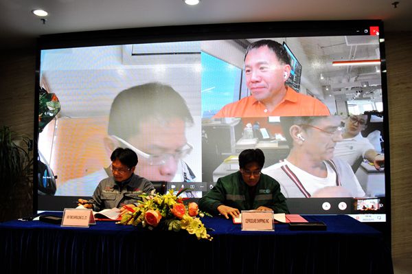 On 15 February, 2022, the closing ceremony for 27# 110,000 DWT Oil Tanker with Hull No.0311127 was held at the meeting room on 8th floor of New Times Office Building. Our CEO Mr. Liu Haijin, Executive Deputy General Manager Mr. Zhang Yuyong, Deputy General Manager & Executive Director Mr. Yuan Heng and owner's representative were present, and the members from owner's head office also witnessed this ceremony through video. The vessel was smoothly and successfully delivered by us and accepted by the Owner.
