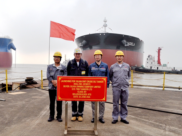 On June 26, 2024, the launching ceremony of two units of 159,000 DWT Crude Oil Tankers bearing builder's hull nos. 0316316 and 0316317 has been carried out successfully by New Times Shipbuilding Co., Ltd. The representatives from shipyard, the Owner TMS together with the representatives from BV classification society attended and witnessed this event.