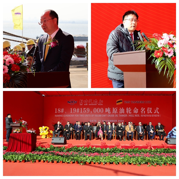 On 27 November, 2024, we held naming ceremony for two units of 159,000 DWT Crude Oil Tankers bearing builder's hull nos. 0316318 and 0316319. Our CEO Mr. Liu Haijin, Executive Deputy General Manager Mr. Zhang Yuyong, Deputy General Manager & Executive Director Mr. Yuan Heng, Principal of TMS Tankers Ms. Alexandra Economou, TMS Tankers NB Manager Mr. Vaggelis Pelekanos, Assistant Chief of Surveyor of ABS Mr. Christos Nomikos and other VIP guests attended this ceremony.
