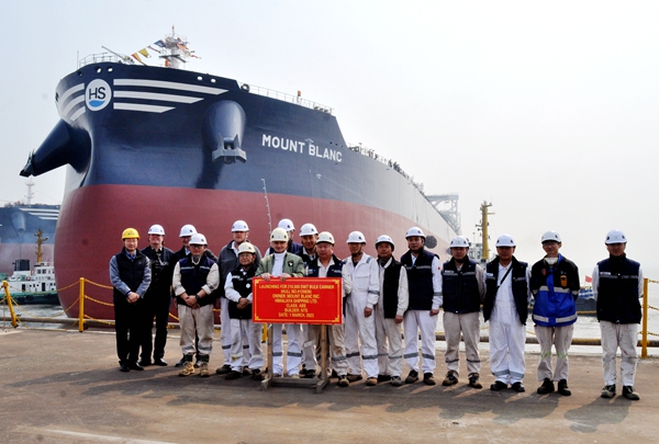 On March 1, 2023, the launching ceremony of one 210,000 DWT Bulk Carrier bearing builder's hull no.0120836 has been carried out successfully by New Times Shipbuilding Co., Ltd. Our CEO Mr. Liu Haijin, Executive Deputy General Manager Mr. Zhang Yuyong, the representatives from Himalaya Shipping Mr. Olav Eikrem, Mr. Jan Andersson and Site Manager Mr. Davor Radic together with his site members and the representatives from ABS classification society attended and witnessed the ceremony together.