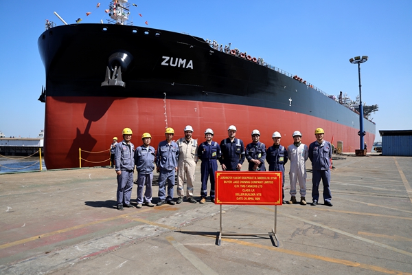 On April 25, 2025, the launching ceremony of one 115,000 DWT Crude/Product Oil Tanker bearing builder's hull no.0311549 has been carried out successfully by New Times Shipbuilding Co., Ltd. The representatives from TMS Site Office, LR classification society and shipyard attended and witnessed the ceremony together.