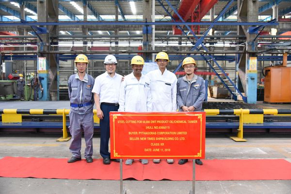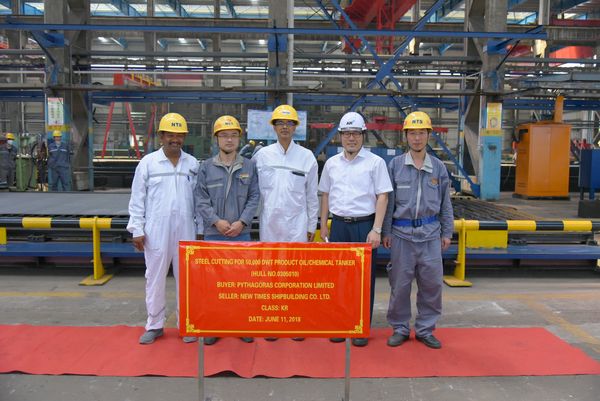 On 11th June, 2018, the steel cutting ceremony for No.10 & No.11 50,000 DWT Product Oil/Chemical Tankers was held in the cutting workshop. Vice General Manager Mr. Zhu Hangang, Assistant General Manager Mr. Xu Zhenyu and representatives from Navig 8  and KR classification society attended this event.