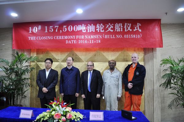 On Nov. 18th, the closing ceremony for No.10 157,500 DWT Oil Tanker was held at the meeting room on 8th floor of New Times Office Building. The delivery documents for this ship were successfully signed by Executive Deputy General Manger Mr. Zhang Yuyong and representatives from the Contracted Buyer, TRF.