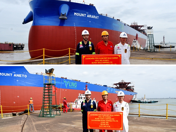 Smooth Launching of 2 X 210,000 DWT Bulk Carriers