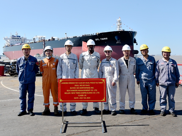 On July 29, 2024, the launching of one 115,000 DWT Crude/Product Oil Tanker bearing builder's hull no.0311543 has been carried out successfully by New Times Shipbuilding Co., Ltd..The representatives from Frontline Site Office, LR classification society and shipyard attended and witnessed the ceremony together.