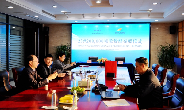 On November 30, 2020, the closing ceremony for 23# 208,000 DWT Bulk Carrier was held at the meeting room on 8th floor of New Times Office Building. Our CEO Mr.Liu Haijin, Executive General Manger Mr. Zhang Yuyong and the representive from H-Line Shipping Co., Ltd. attended this ceremony. The vessel was smoothly and successfully delivered by us and accepted by H-Line.