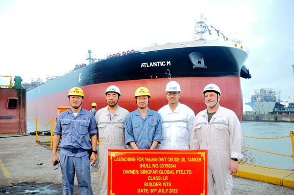 On July 30, 2022, the launching ceremony of one 156,500 DWT Oil Tanker bearing builder's hull no.0315834 has been carried out successfully by New Times Shipbuilding Co., Ltd. Our CEO Mr. Liu Haijin, Executive Deputy General Manager Mr. Zhang Yuyong, the representatives from Singfar Director Mr. Pai Hong Boon attended and witnessed the ceremony together.