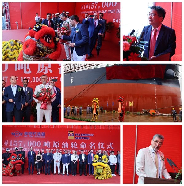 On 30 July, 2025, we held naming ceremony for 81# 157,000 DWT Crude Oil Tanker bearing builder's hull no.0315881. The company's Chief Executive Officer Mr. Liu Haijin, Executive Deputy General Manager Mr. Zhang Yuyong, Deputy General Manager & Executive Director Mr. Yuan Heng, General Manager Assistant Mr. Xu Zhenyu, the representatives from Polembros Shipping Limited Dr. Eleftherios, Site Manager Mr. Christos and other distinguished guests attended this ceremony.