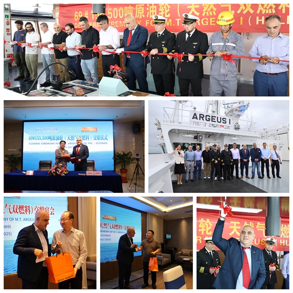 On 31 July, 2025, the company's Executive Deputy General Manager Mr. Zhang Yuyong, General Manager Assistant Mr. Xu Zhenyu, Chief Technical Officer of Capital Ship Management Corp. Mr. Nikolas Vaporis, and other honored guests attended the ribbon-cutting ceremony for 69# 155,500 DWT LNG Dual Fuel Crude Oil Tanker bearing builder's hull no.0315869 celebrating the successful delivery of the vessel.