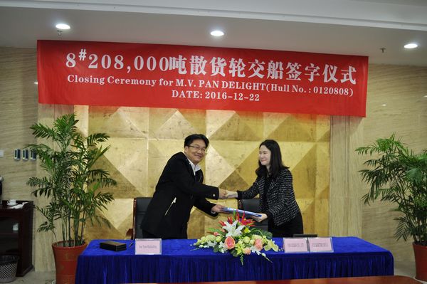 On Dec. 22 the closing ceremony for No.8 208,000 DWT Bulk Carrier was held at the meeting On Dec. 22 the closing ceremony for No.8 208,000 DWT Bulk Carrier was held at the meeting room on 8th floor of New Times Office Building. The delivery documents for this ship were successfully signed by Executive General Manger Mr. Zhang Yuyong and representatives from the Contracted Buyer, Pan Ocean Co., Ltd.