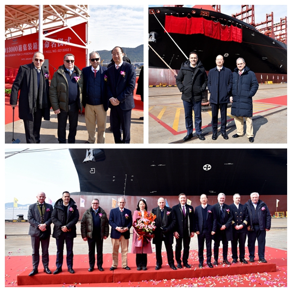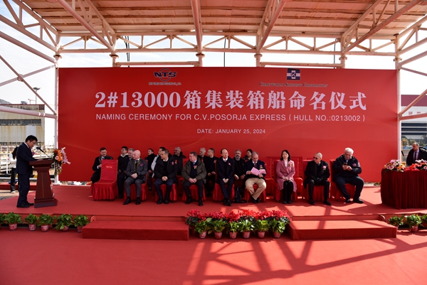 On January 25, 2024, we held naming ceremony for one 13000 TEU Container Vessel with Builder's Hull No.0213002. Our CEO Mr. Liu Haijin, Executive Deputy General Manager Mr. Zhang Yuyong, Chartworld Shipping Corporation MD - Mr. Antonios Faraklas, Hapag Lloyd Hamburg - Senior Director Mr. Lutz-Michael Dyck, BV New Construction Dept. Manager in China -  Mr. Christophe Vaes and other VIP guests attended this ceremony. Godmother Mrs. Zhu Jie named the vessel for "POSORJA EXPRESS".