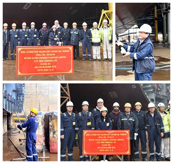On April 8, 2024, the keel laying of two units of 159,000 DWT Crude Oil Tankers bearing builder's hull nos. 0316316 and 0316317 has been carried out successfully by New Times Shipbuilding Co., Ltd.. The representatives from shipyard, the Owner TMS together with the representatives from BV classification society attended and witnessed this event.