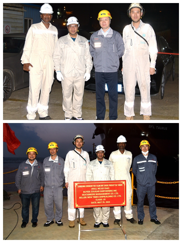 On May 25, 2024, the launching of one 115,000 DWT Crude/Product Oil Tanker bearing builder's hull no.0311542 has been carried out successfully by New Times Shipbuilding Co., Ltd..The representatives from shipyard, Frontline Site Manager Mr. Raman together with the representatives from LR classification society attended and witnessed this event.