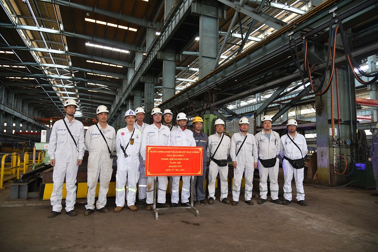 On 6 May, 2019, the block fabrication of No.17 208,000DWT Bulk Carrier was carried out at the cutting workshop of NTS. Our General Manager Assistant Mr. Ding Baiying and representatives from the owner 2020 Bulkers and ABS classification society attended this event.