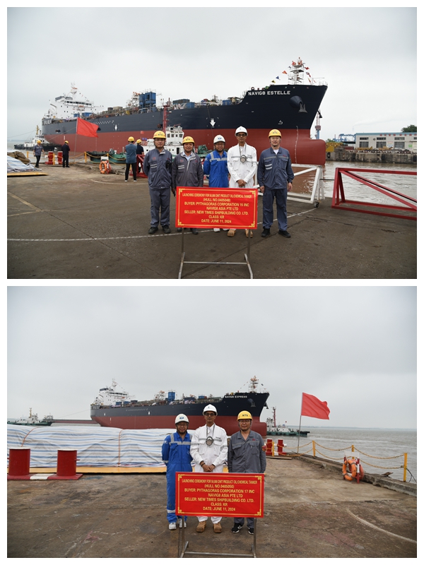 On June 11, 2024, the launching of two units of 50,000 DWT Product Oil/Chemical Tankers bearing builder's hull no.0405048 and 0405050 has been carried out successfully by New Times Shipbuilding Co., Ltd.. The representatives from shipyard, N8  Site Manager Mr. Binod Kumar together with the representatives from KR classification society attended and witnessed this event.