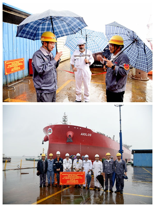 10月31日下午、11月2日下午,公司1#塢區(qū)域,船舶下水工作如期開展,45#115000噸油船、54#50000噸Ⅱ類化學品船順利駛出船塢,該兩艘船舶下水節(jié)點的順利完成標志著1#塢2024年度8艘船舶建成下水目標提前實現。