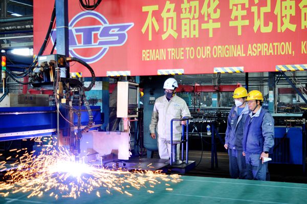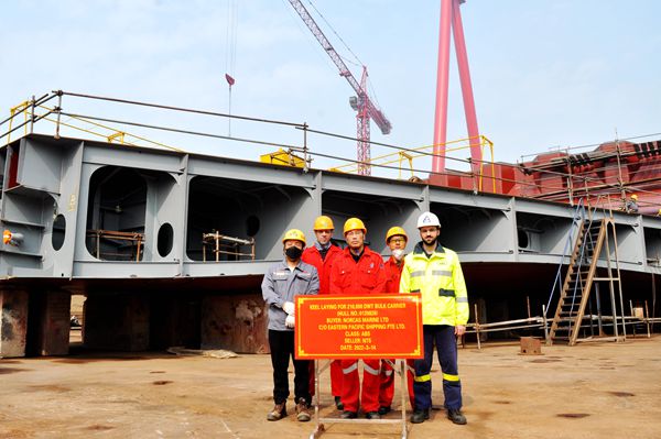 3月14日上午,公司分別在東區(qū)鋼加車間、新區(qū)大塢內舉行開工點火、進塢合攏儀式,40#115000噸油船船體零部件點火切割預制;56#156500噸油船和26#210000噸雙燃料散貨船船體分段進塢合攏搭載,一天內順利實現(xiàn)三大節(jié)點。