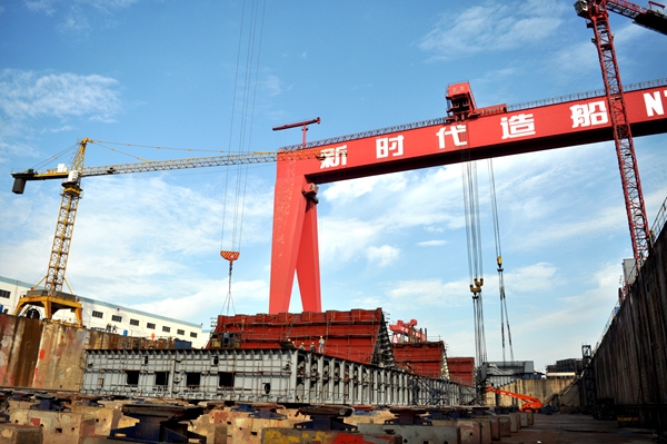 生產(chǎn)速遞:6#325000噸超大型礦砂船進(jìn)塢合攏(圖)