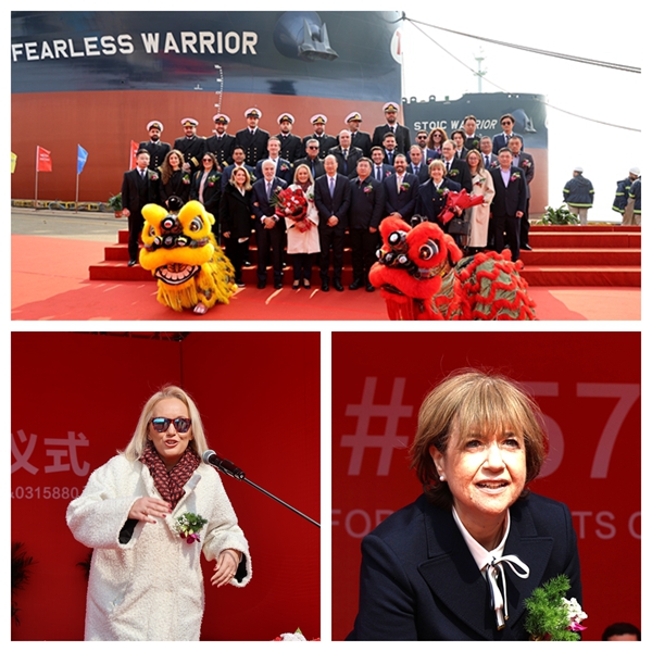 3月7日,公司隆重舉行船舶命名儀式,79#80#157000噸油船、50#113500噸油船分別命名為“FEARLESS WARRIOR”“STOIC WARRIOR”“SAMOTHRAKI”號。