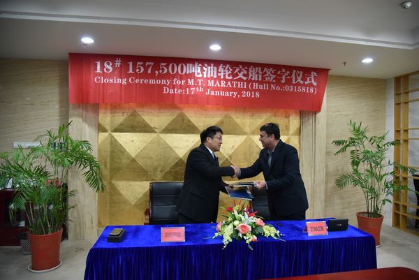 1月17日,18#157500噸油船簽字交付船東。