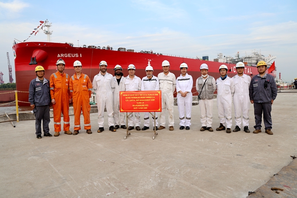 5月14日下午,公司3#船塢內(nèi)新建的11#69#155500噸LNG雙燃料動(dòng)力油船駛出船塢,順利實(shí)現(xiàn)下水目標(biāo)。
