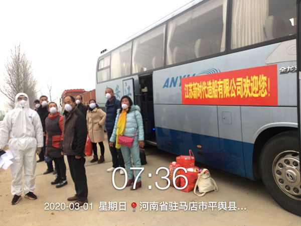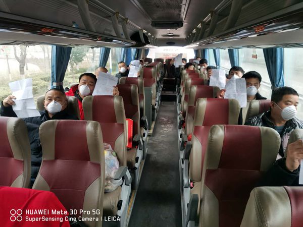 讓廣大外省籍員工安全返廠成為復工復產(chǎn)迫在眉睫急需解決的問題,于是,在公司的統(tǒng)一指揮下,人教部、車隊、生產(chǎn)車間、施工班組、勞務隊等各個部門開始了緊張有序的協(xié)調(diào)聯(lián)動,分批包車奔赴山東、安徽、河南等地,日夜兼程迎接外省籍員工安全返廠,為企業(yè)有序復工復產(chǎn)積極做好準備。