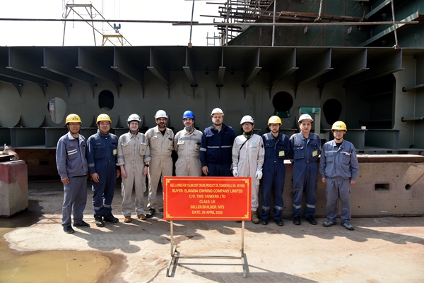 4月29日上午,公司在西區(qū)1#塢舉行船舶進(jìn)塢合攏儀式,58#50000噸Ⅱ類化學(xué)品船、56#115000噸油船船體結(jié)構(gòu)分段開(kāi)始搭載建造。
