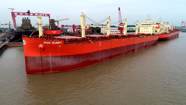 韓國船東Pan Ocean Co., Ltd.在我們企業(yè)共訂制了3艘63500噸散貨船,今天交的是該系列船舶的第二艘。