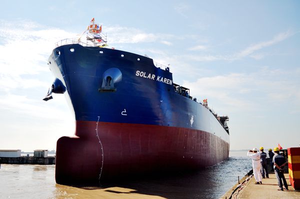 下水直擊:26#27#50000噸化學品油船順利下水(圖)