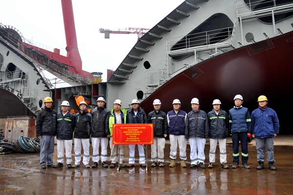 12月15日上午,公司在3#塢區(qū)域內(nèi)舉行船舶進(jìn)塢合攏儀式,43#44#210000噸雙燃料動力散貨船船體結(jié)構(gòu)分段搭載合攏工作正式開始。