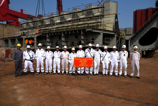 在鞭炮齊鳴中,33#34#210000噸雙燃料動力散貨船船體結構開始合攏搭載。該型210000噸雙燃料動力散貨船總長299.95米,兩柱間長294.75米、型寬50.00米,型深25.20米,設計吃水18.40米,結構吃水18.48米,載重噸210000MT。