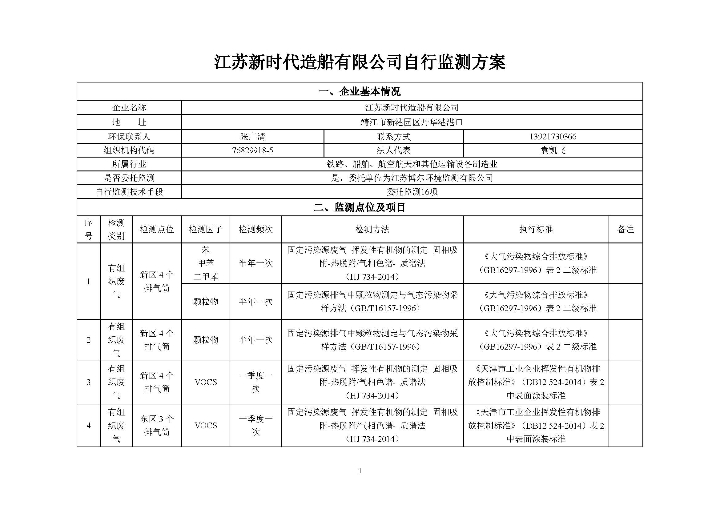 江蘇新時代造船有限公司自行監(jiān)測方案