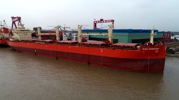 韓國(guó)船東Pan Ocean Co., Ltd.在我們企業(yè)共訂制了3艘63500噸散貨船,今天交的是該系列船舶的第一艘。