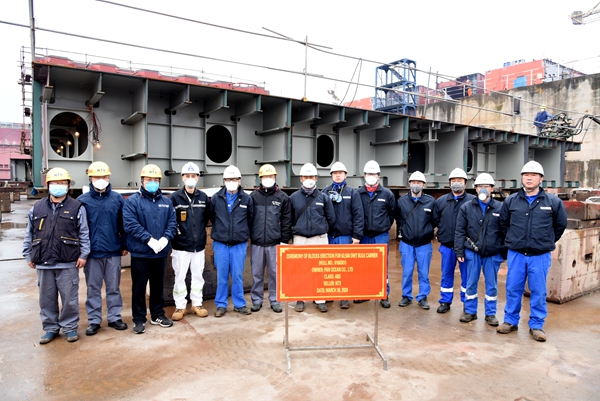 1#63500噸散貨船進(jìn)塢合攏