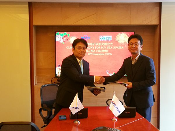 11月12日,公司在上海舉行簽字交船儀式,常務副總經(jīng)理張玉永與韓國船東泛洋海運公司代表共同簽署交船文本,名為“SEA GUAIBA”號的325000噸超大型礦砂船正式交付船東。