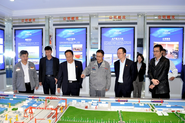 活動結(jié)束后,薛忠勇一行在副總經(jīng)理朱韓鋼的陪同下,參觀了企業(yè)展廳,并深入到海運(yùn)股份油輪公司訂造的50000噸IMO Ⅱ型油化品船的施工現(xiàn)場進(jìn)行實(shí)地考察。