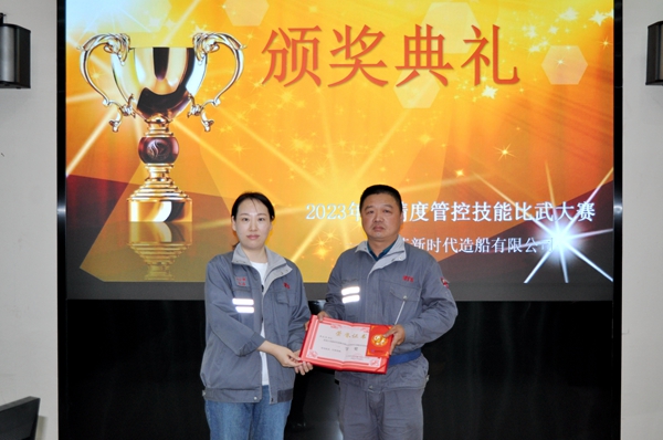 10月25日上午,公司在新區(qū)辦公樓一樓會(huì)議室舉行頒獎(jiǎng)儀式,工會(huì)副主席朱潔分別為在“2023年度精度管控技能大比武”活動(dòng)中獲獎(jiǎng)的分段制造部徐文波等頒發(fā)了榮譽(yù)證書(shū)及獎(jiǎng)金。