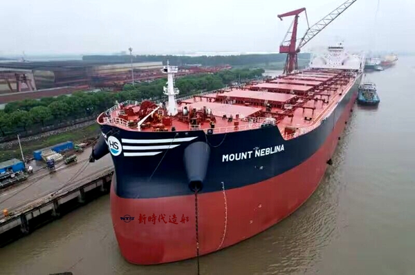 在大家的共同見證下,常務(wù)副總經(jīng)理張玉永與船東現(xiàn)場(chǎng)經(jīng)理Davor Radic、建信金租船舶業(yè)務(wù)部銷售總監(jiān)鈕文玨共同簽署交付文本。船東Himalaya(喜馬拉雅)公司目前在我們企業(yè)訂有12艘210000噸雙燃料動(dòng)力散貨船,此次交付的是210000噸雙燃料動(dòng)力散貨船系列中的第六艘船舶。