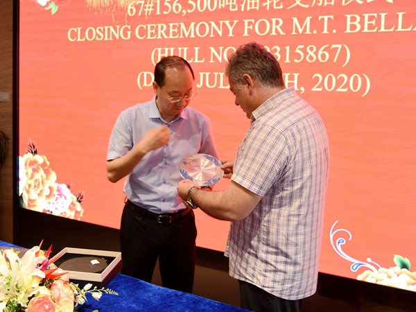 總經(jīng)理劉海金向船東代表贈送禮品