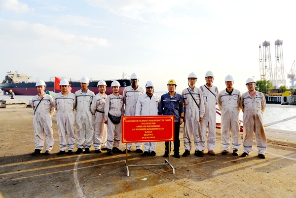 挪威船東Frontline公司現(xiàn)場經(jīng)理raman率領(lǐng)船檢、船級社代表等嘉賓在現(xiàn)場觀看下水全過程。