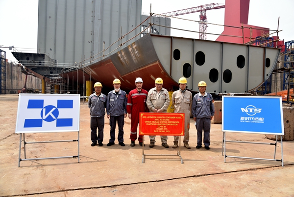 船東Chartwrold在我們企業(yè)訂制了2艘13000箱集裝箱船,此次上臺(tái)的是該系列集裝箱船中的第2艘船舶。