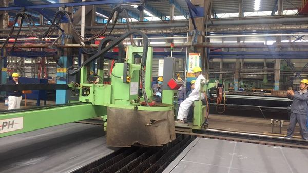 5月7日上午9點(diǎn)38分,首制船8#9#50000噸化學(xué)品船在東區(qū)鋼加車間隆重開工,公司總經(jīng)理助理徐震宇、N8船東公司代表、KR船級社代表及公司相關(guān)人員參加開工點(diǎn)火儀式。N8船東現(xiàn)場經(jīng)理庫馬親自點(diǎn)火,50000噸化學(xué)品船r的第一塊鋼板開始切割下料。