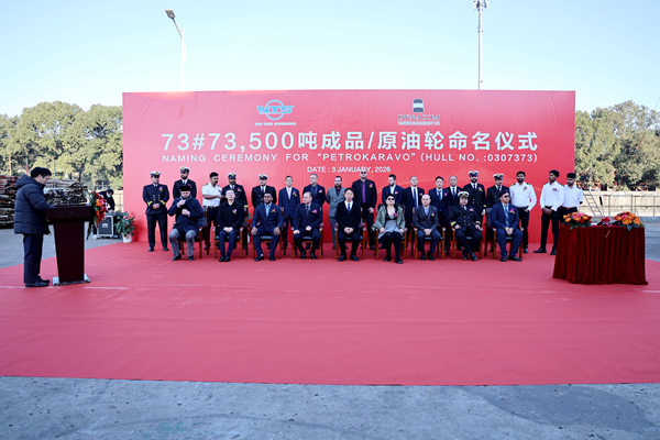 “PETROKARAVO”號油船是為希臘船東Dynacom承建的系列高性能、環(huán)保型油船之一,系列船總長224米,型寬32.2米,設(shè)計(jì)先進(jìn),節(jié)能環(huán)保,符合最新的國際規(guī)范要求。目前該船東在我們公司訂制了4種船型計(jì)30艘油船,此次命名交付的“PETROKARAVO”號油船是船東Dynacom龐大訂單中的新成員,為我們與船東的長期合作夯實(shí)了根基。船舶的成功交付充分體現(xiàn)了船東對我們生產(chǎn)管理和建造質(zhì)量的高度信任,更是以“開門紅”的昂揚(yáng)姿態(tài),展現(xiàn)了我們持續(xù)創(chuàng)新、精益求精的奮斗精神,彰顯了公司在全球中型油船建造市場的領(lǐng)先地位與強(qiáng)大交付能力,我們將繼續(xù)聚焦綠色、智能、高附加值船型研發(fā)與建造,為全球航運(yùn)業(yè)提供更多一流船舶,助力海洋強(qiáng)國建設(shè)不斷取得新成就。