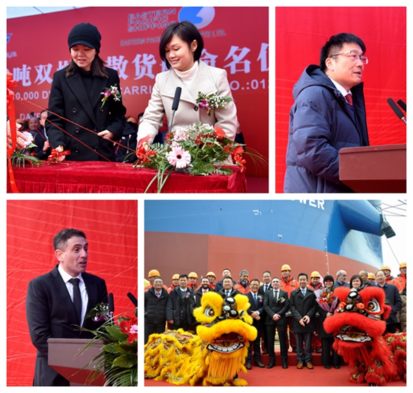 上午9:00,49#210000噸雙燃料動(dòng)力散貨船命名儀式在新區(qū)碼頭隆重舉行,公司領(lǐng)導(dǎo)劉海金、張玉永、袁衡、徐震宇等與船東EPS公司代表一起出席活動(dòng)。總經(jīng)理劉海金在致辭中表示,向各位來賓的到來表示熱烈的歡迎與衷心地感謝,自2019年與EPS簽訂了第一筆訂單到目前為止共簽訂了訂單31艘船舶,此次交付的是11艘210000噸雙燃料動(dòng)力散貨船系列船中的第10艘船舶。多年來,基于雙方互信互利的合作基礎(chǔ),彼此逐漸熟悉、不斷理解、增進(jìn)熱愛,期望在以后的合作中,繼續(xù)勠力同心攜手締造更多共商共贏、互利互惠的豐碩成果。在喜慶的氣氛中,49#210000噸雙燃料動(dòng)力散貨船被成功命名為“MOUNT GOWER”號。10:18,該船的簽字交付儀式在八樓會(huì)議室舉行,張玉永與船東EPS代表倪杰分別簽署交船文件,新船完工交付。