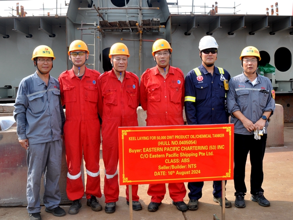 8月16日上午,公司在1#塢內(nèi)舉行船舶進塢合攏儀式,54#50000噸Ⅱ類化學(xué)品船、45#115000噸油船的船體結(jié)構(gòu)分段開始合攏搭載。常務(wù)副總經(jīng)理張玉永分別與新加坡船東EPS、希臘船東Capital代表分別出席活動。