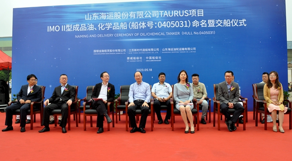 5月18日上午10:00,東區(qū)舾裝碼頭上,31#50000噸Ⅱ類(lèi)化學(xué)品船命名交付儀式隆重舉行,公司總經(jīng)理劉海金、常務(wù)副總經(jīng)理張玉永、山東海運(yùn)油輪運(yùn)輸有限公司董事長(zhǎng)徐濤、國(guó)銀金融租賃股份有限公司船舶事業(yè)部副總經(jīng)理劉玉貫等嘉賓出席活動(dòng)。