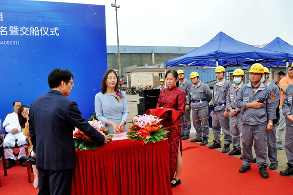 在喜慶的氣氛中,31#50000噸Ⅱ類(lèi)化學(xué)品船被命名為“CL  PEARL BUCK”號(hào)。儀式上,常務(wù)副總經(jīng)理張玉永、山東海運(yùn)油輪運(yùn)輸有限公司董事長(zhǎng)徐濤先后致辭,共同表達(dá)對(duì)在船舶建造過(guò)程中辛勤付出的全體人員表示衷心地感謝和崇高的敬意;31#50000噸Ⅱ類(lèi)化學(xué)品船的建成,進(jìn)一步夯實(shí)了各方的合作關(guān)系,該船的成功遠(yuǎn)航,承載著合作各方的祝愿與期盼,預(yù)示今后美好航程的開(kāi)啟。