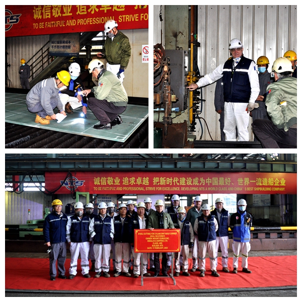 船東喜馬拉雅公司代表Davor Radic、船東Eastern Pacific Shipping Pte. Ltd.(EPS)公司代表倪杰分別與生產(chǎn)管理部負責(zé)人陳月鋒及相關(guān)部門代表出席活動,見證船舶工開建造。